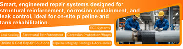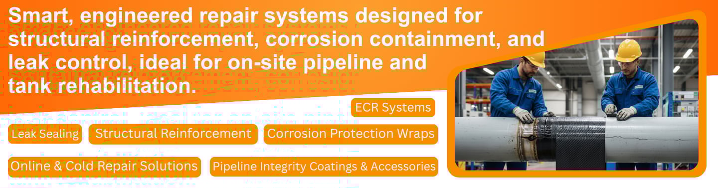 Our advanced composite repair systems offer reliable, engineered solutions for structural reinforcement, corrosion containment, and leak control in critical piping and equipment. Designed for on-site rehabilitation of pipelines, tanks, and process systems, these solutions deliver exceptional strength and performance without the need for costly replacements or extended downtime. Fully compliant with ISO 24817 and ASME PCC-2 standards, our repair systems ensure long-term integrity, safety, and operational efficiency across oil & gas, chemical, and industrial sectors.