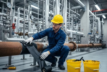 Formulated with high-performance resin systems and reinforced fiberglass or carbon fabrics, the wraps conform to irregular geometries and create a seamless, protective composite layer. The cold-applied, solvent-free process ensures quick and safe installation without welding, hot work, or shutdowns, making it ideal for both preventive coating and remedial rehabilitation of corroded surfaces.
